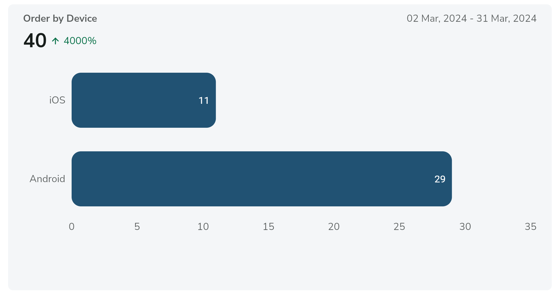 This graph provides an at-a-glance comparison of the total orders made from each type of device, allowing you to assess where the majority of your app’s orders are originating.