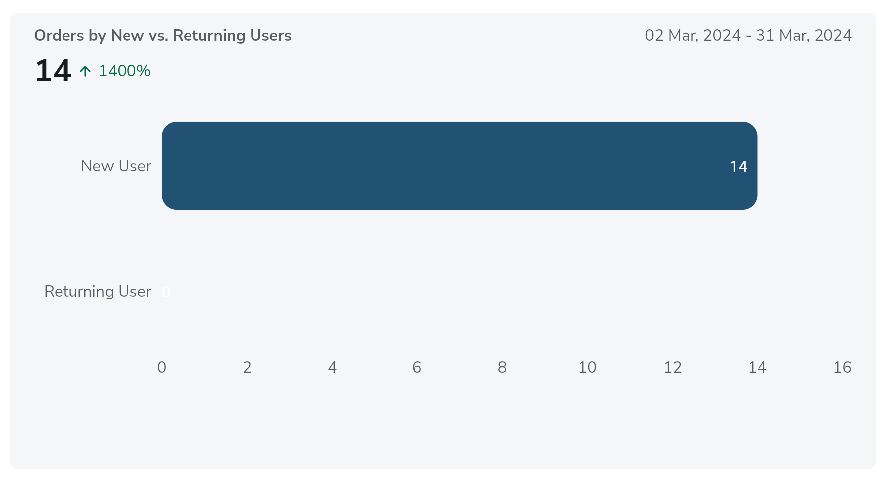 * **Total Orders Count**: Displays the total number of orders combining new and returning users.