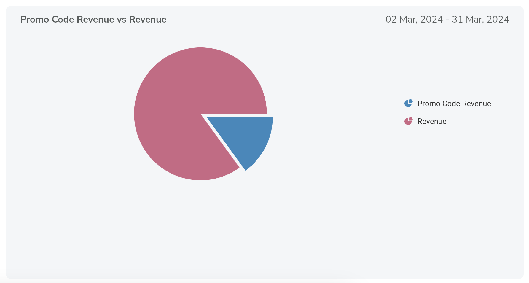 * **Revenue Split**: The chart is divided into two segments, showing the part of your revenue driven by promo code usage versus the total revenue without discounts.