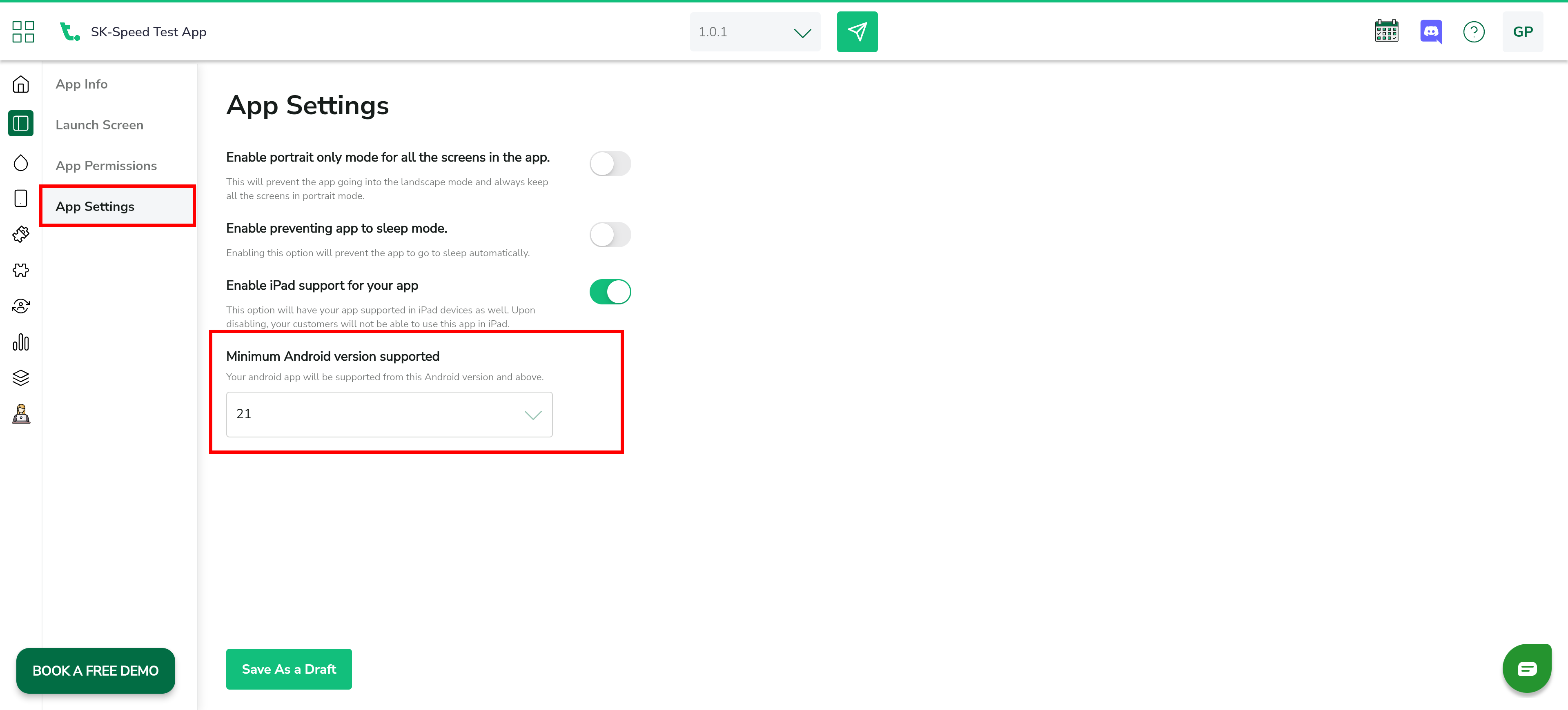 The "Minimum Android version supported" feature allows you to set the minimum Android version required for your app. This ensures that your app runs smoothly and utilizes the features available in newer and older Android versions.